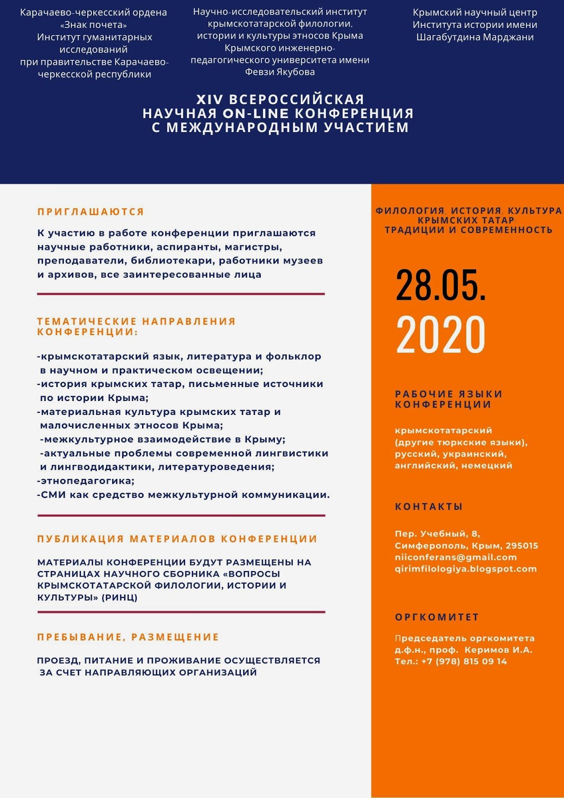 XIV Всероссийская научная on-line конференция «Филология, история и культура крымских татар: традиции и современность» с международным участием!